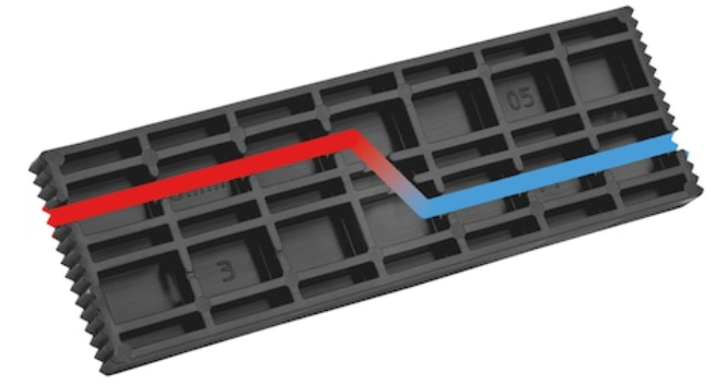 • Belüftungskanal für Dampfdruckausgleich (ab Klotzbreite 32 mm und Dicke 2 mm)