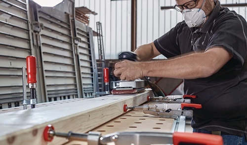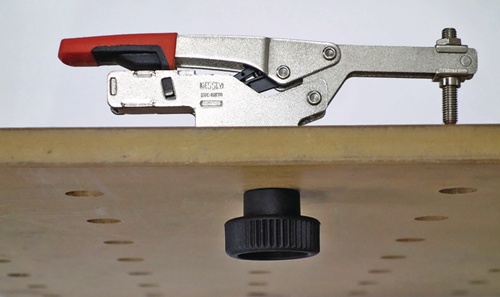 zum Einsatz von BESSEY Schnellspannern auf Multifunktionstischen wie z.B. Festool MFT und Sortimo WorkMo mit Lochdurchmesser 20 mm und Plattenstärke von min. 19 mm bis max. 25 mm