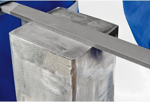 flachstumpf · mit Ergonomie-Feilenheft · Form A · rechteckige Feile mit Hieb auf drei Seiten · eine Seite ungehauen · zur Bearbeitung rechtwinkliger Geometrien · auch für Bronze, Kupfer, Messing und Zink geeignet