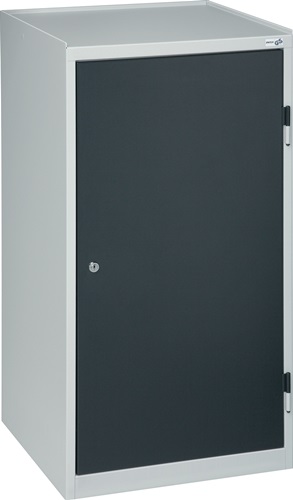 Stahlblechkonstruktion mit widerstandsfähiger Pulverbeschichtung · ausgestattet mit Schubladen und herausziehbaren Fachböden, mit allseitigem Rand, Höhe 30 mm, auf kugelgelagerten Präzisionsauszügen, 100 % ausziehbar · Schubladen, H 100 mm und Fachböden im 25-mm-Raster höhenverstellbar · Tragfähigkeit pro Fachboden/Schublade 35 kg · obere Ablage mit Abrollrand · Flügeltür abschließbar mit Zylinderschloss und Drehriegelverschluss mit 3-Punkt-Verriegelung