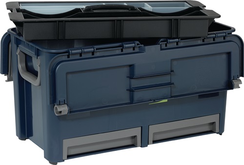 mit im Deckel voll versenkbaren Bügeltragegriffen · Werkzeugträger und Schubladen auf Wunsch weiter unterteilbar · mit separat erhältlichen Einteilungssets – gehören nicht zum Lieferumfang · bitte separat bestellen