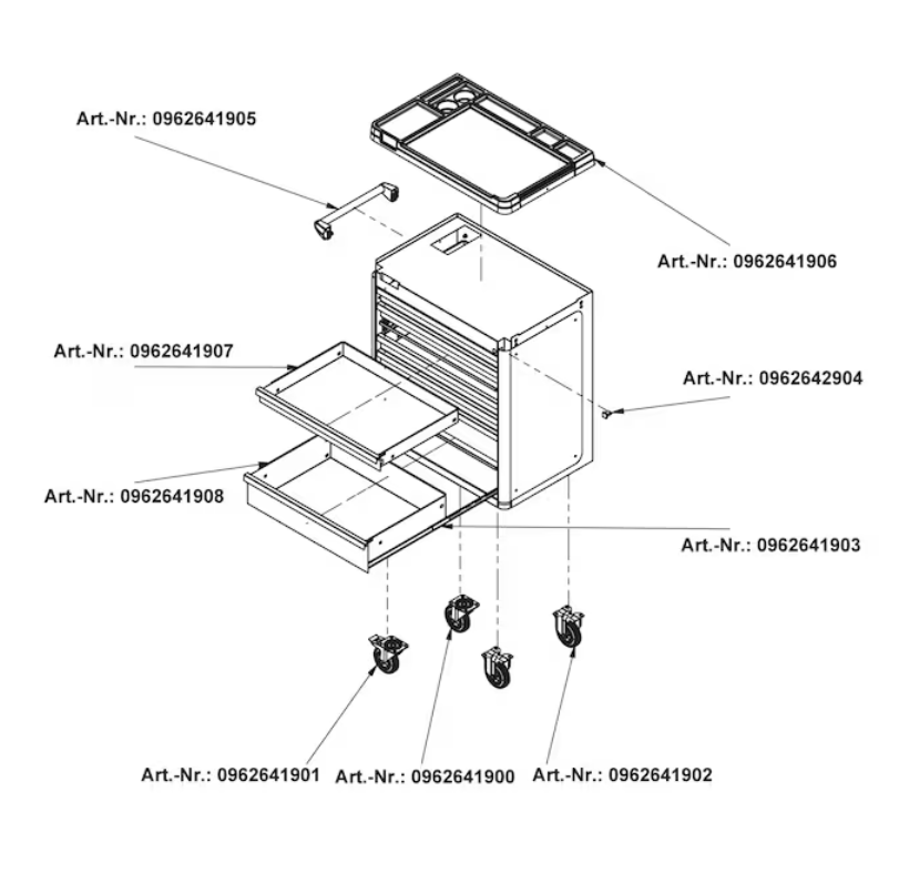 - Der Werkstattwagen lässt sich durch verschiedene Zubehörteile beliebig an die jeweiligen Bedürfnisse anpassen