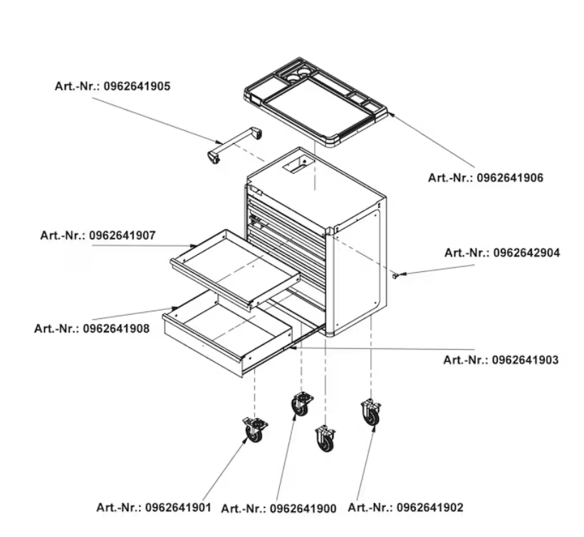 - Der Werkstattwagen lässt sich durch verschiedene Zubehörteile beliebig an die jeweiligen Bedürfnisse anpassen