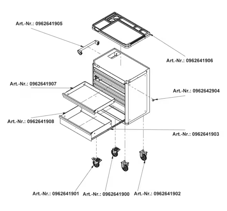 - Der Werkstattwagen lässt sich durch verschiedene Zubehörteile beliebig an die jeweiligen Bedürfnisse anpassen