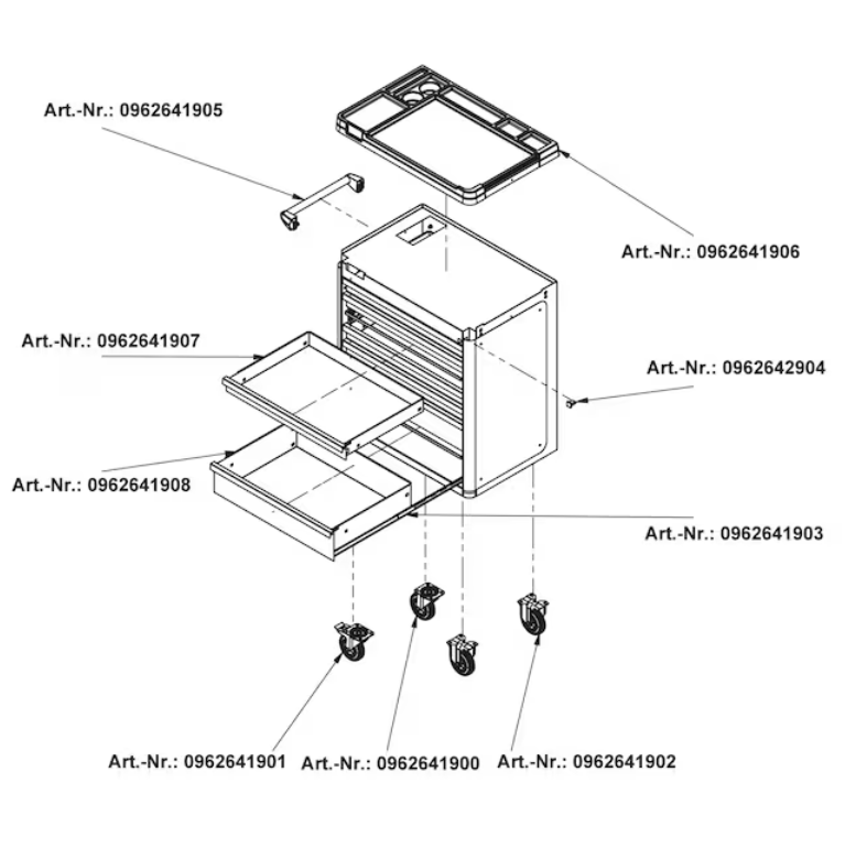 - Der Werkstattwagen lässt sich durch verschiedene Zubehörteile beliebig an die jeweiligen Bedürfnisse anpassen