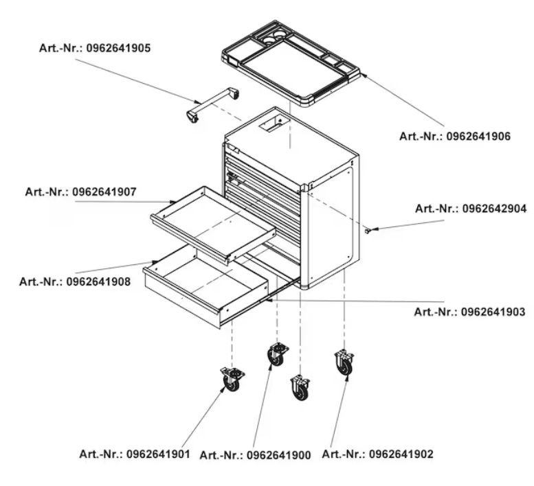 - Der Werkstattwagen lässt sich durch verschiedene Zubehörteile beliebig an die jeweiligen Bedürfnisse anpassen