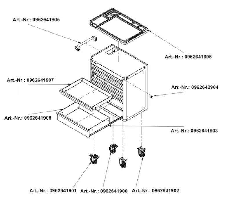 - Der Werkstattwagen lässt sich durch verschiedene Zubehörteile beliebig an die jeweiligen Bedürfnisse anpassen