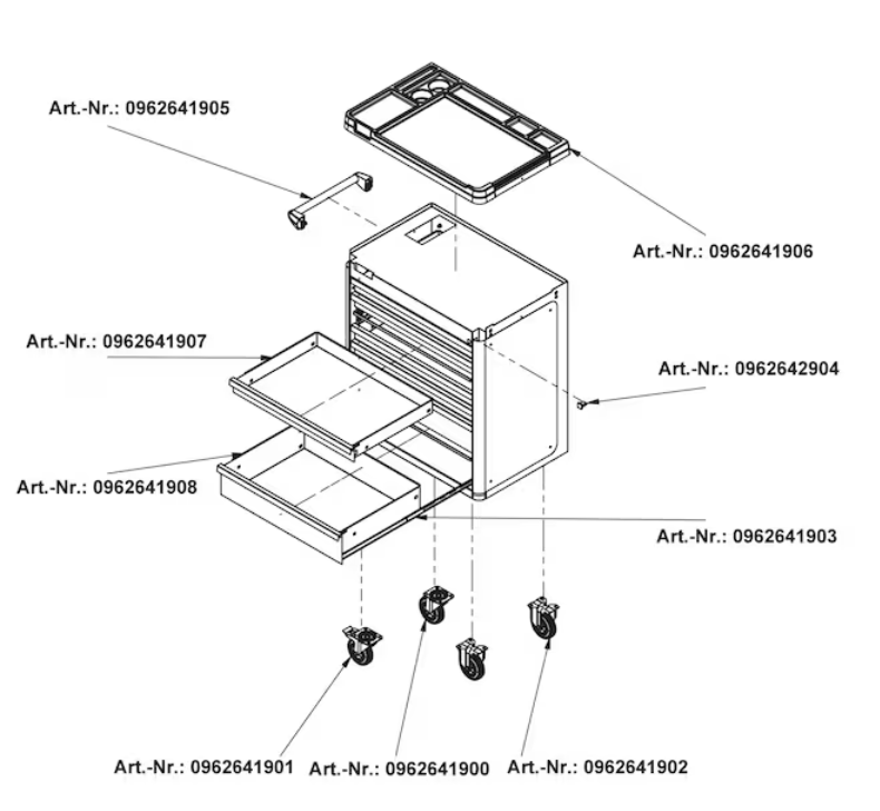 - Der Werkstattwagen lässt sich durch verschiedene Zubehörteile beliebig an die jeweiligen Bedürfnisse anpassen