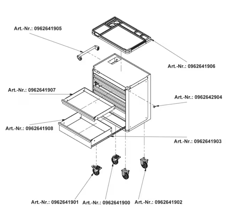 - Der Werkstattwagen lässt sich durch verschiedene Zubehörteile beliebig an die jeweiligen Bedürfnisse anpassen