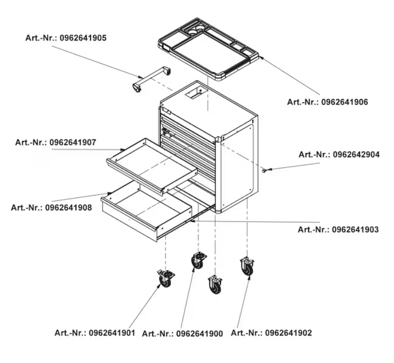 - Der Werkstattwagen lässt sich durch verschiedene Zubehörteile beliebig an die jeweiligen Bedürfnisse anpassen