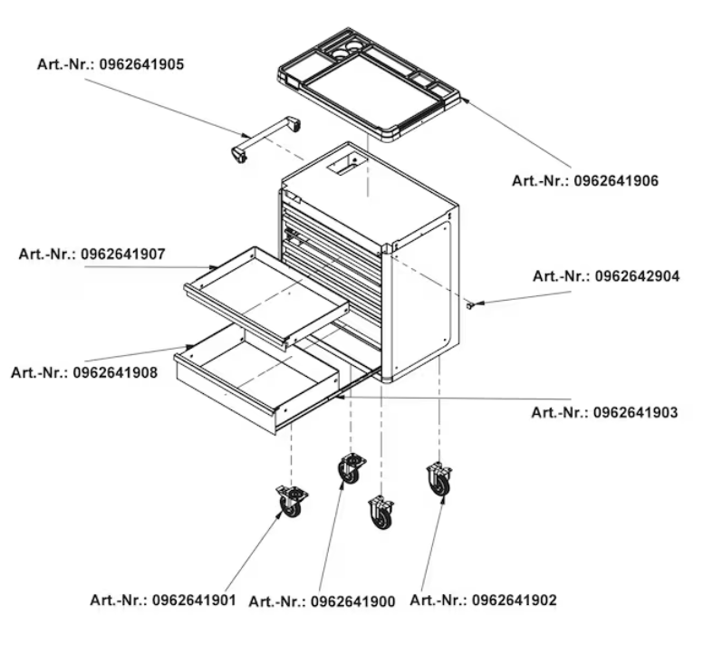- Der Werkstattwagen lässt sich durch verschiedene Zubehörteile beliebig an die jeweiligen Bedürfnisse anpassen