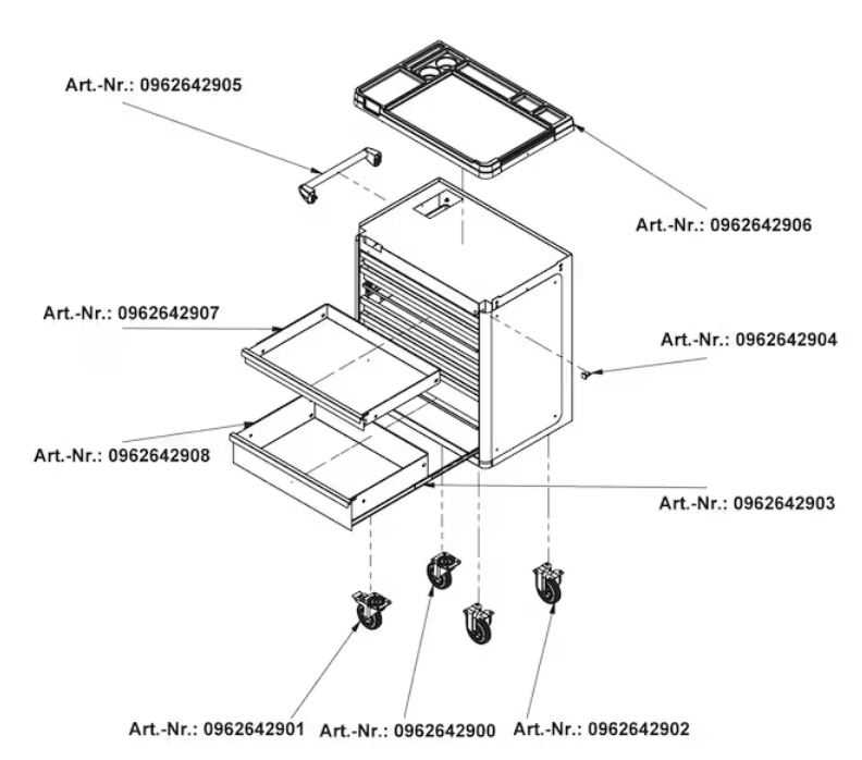 - Der Werkstattwagen lässt sich durch verschiedene Zubehöre beliebig an die jeweiligen Bedürfnisse anpassen