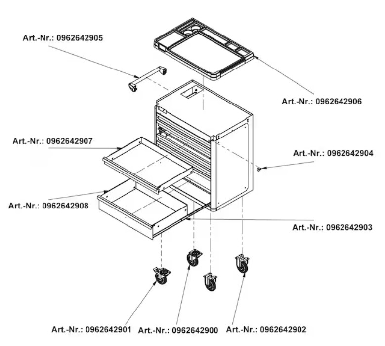 - Der Werkstattwagen lässt sich durch verschiedene Zubehöre beliebig an die jeweiligen Bedürfnisse anpassen