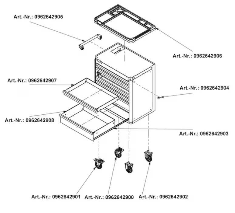 - Der Werkstattwagen lässt sich durch verschiedene Zubehöre beliebig an die jeweiligen Bedürfnisse anpassen