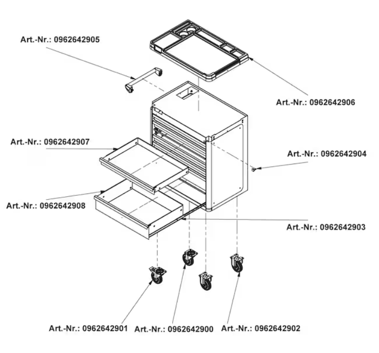 - Der Werkstattwagen lässt sich durch verschiedene Zubehöre beliebig an die jeweiligen Bedürfnisse anpassen