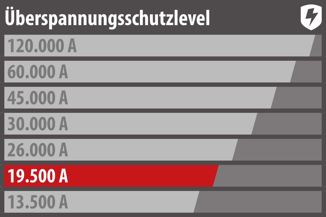 zu 120.000A geschützt werden. Zudem ist ein hochwertiger Schutz vor