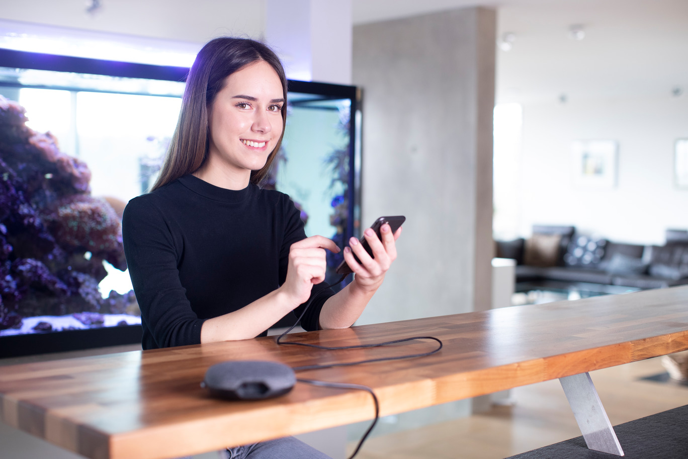 Die Ladestation mit Textiloberfläche eignet sich perfekt für den